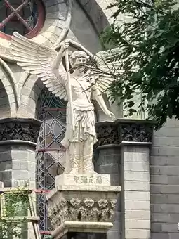 这座建于1901年的教堂小巧精致,是北京四大教堂之一,采用法式哥特式风格。教堂正门上方的天使雕像尤其精美。