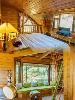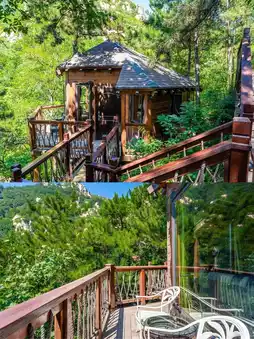 沿着蜿蜒的林间小径,您将发现各种形状和主题的树屋。“小红帽之家”隐匿于古老的枝桠间,俏皮的红色屋顶仿佛在低语着经典的童话故事;高耸入云的“睡美人城堡”以其尖顶和雕花栏杆散发着神秘的气息;而“精灵树屋”和“爱丽丝梦游仙境”等充满奇思妙想的树屋,仿佛是从童话书中走出来一般,充满了无限的想象力和浪漫情调。