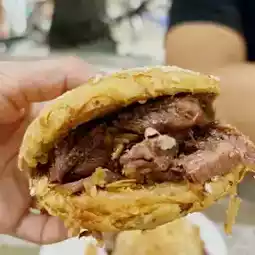 到达什刹海后,我们在当地人推荐的“亚尔利记”吃了早餐。羊杂汤味道鲜美极了。我们还点了一个芝麻肉包,每个只要10元人民币,里面是红烧牛肉,分量十足,性价比超高,而且味道也很棒!