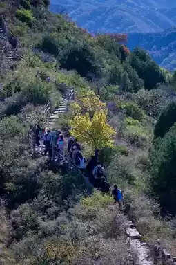 位于北京市平谷区,三面环山,一面临水,森林覆盖率高,空气清新。沿着湖边栈道和山脊小径漫步,您可以攀登到山顶俯瞰湖光山色。这里素有“小北戴河”、“北京郊区小瑞士”之称,是休闲放松、徒步远足和拍照聚会的理想场所。(全程路线也适合初学者。)