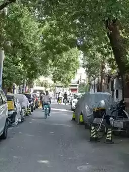 漫步在小巷中,随处可见日常生活的景象:行人来来往往,共享单车悠闲骑行,与盖着车罩的私家车并排停放——新旧交融,浑然一体。