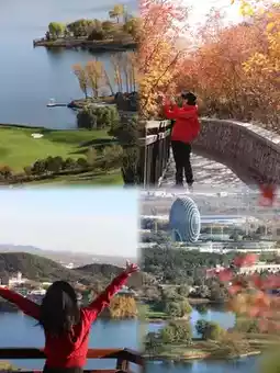 北京延庆世博园,10月下旬至11月上旬,大型公园,永宁馆、中国馆等众多景点,秋色宜人,遍地枫叶银杏,适合步行、带孩子游玩和骑行。附近景点包括玉渡山、野鸭湖、八达岭。