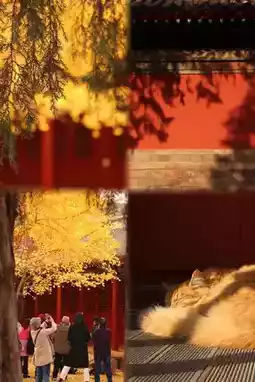 11月中下旬,石景山区摩哂口,承恩寺内的古银杏树,每年秋季限时免费开放,请查询石景山区文化旅游信息并提前预约,推荐沿着附近的景溪古道摩哂口街漫步。