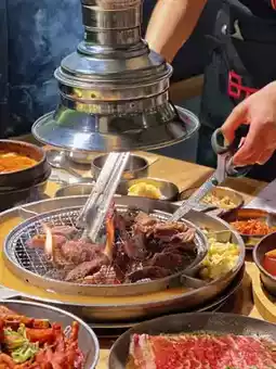 圆形金属桌、滋滋作响的烤架,以及温馨热闹的氛围——仿佛置身于韩剧场景之中。👩🏻🍳