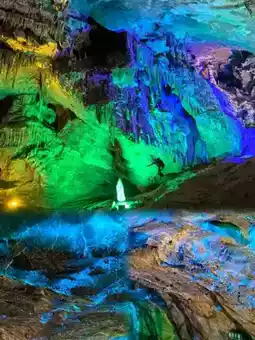 🌟亮点:世界上最长的地下河!乘船游览3000米长的喀斯特溶洞,欣赏彩色灯光下如梦似幻的钟乳石。洞穴常年保持12℃的凉爽温度~