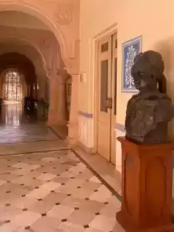 拉尔加尔博物馆坐落于宏伟的拉尔加尔宫内,是比卡内尔皇家遗产的宝库。👑✨ 探索皇家服饰、古董武器、绘画、手稿和历史文物,感受昔日王公贵族的辉煌。📜 红色砂岩建筑为每一件展品都增添了皇家魅力,使其成为历史和文化爱好者的必游之地!💛
