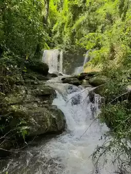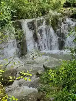 它非常美丽。步道绿树成荫,仿佛置身于森林之中。一路走来,空气清新凉爽。我们将逐层游览瀑布,直到到达最顶层,那里景色最为壮观。我们去的时候,水量非常充沛。还有一只当地的狗狗在前面带路。我们非常喜欢这个瀑布,一定会再去一次。最重要的是,它是免费的。