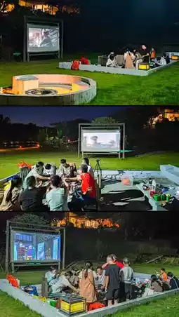 白天徒步罗浮山,探访古老的道观,感受历史的沉淀;在私密温泉♨️中放松身心,在温暖的雾气中洗去疲惫。黄昏时分,在草坪上享受烧烤,烤肉的香气与吉他声交织,带来极致的惬意!夜晚,露天电影放映——与朋友们盘腿而坐,欢声笑语点亮星空~