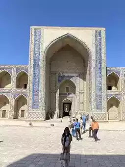 布哈拉的乌鲁格别克经学院是一所备受尊崇的学府,也是这座城市丰富文化遗产和知识底蕴的见证。当我踏入经学院宁静的庭院时,精美的瓷砖、错综复杂的马赛克和雄伟的建筑映入眼帘,仿佛在诉说着该地区在艺术和科学领域的卓越成就。经学院的历史源远流长,由著名天文学家和政治家乌鲁格别克创立,他致力于营造浓厚的学习氛围和学术探索精神。经学院内部精美的书法和华丽的装饰令我叹为观止,充分展现了当地工匠的精湛技艺。经学院宁静祥和的氛围和令人惊叹的建筑,使其成为任何想要体验布哈拉文化遗产精髓的人的必游之地。它的美景、历史和文化意义使其成为任何中亚旅行中令人难忘的一部分。
