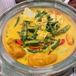 这里的椰子奶昔超赞,叻沙汤汁浓稠美味!炸鸡外酥里嫩,味道十足。配菜里的香脆江鱼仔和花生也很棒,黄瓜更是增添了一丝清爽。