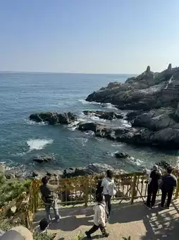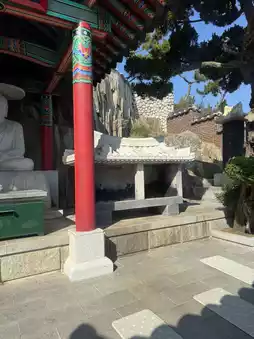 ✨海东龙宫寺 寺庙周围的树木色彩斑斓,让我们感受到季节的更迭。寺庙的宁静更增添了它的魅力。我和朋友悠闲地漫步其中,尽情享受着这季节的美好。海东龙宫寺是釜山必游景点之一。周围有很多小吃摊和纪念品商店,是消磨时光的理想之地。这里也是我和朋友留下美好回忆的绝佳场所。