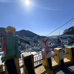 甘川文化村色彩缤纷,非常可爱,有很多纪念品商店和咖啡馆,所以我在那里待了很久。
