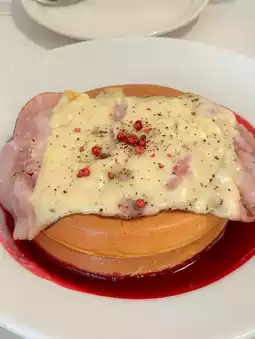 我们选择的咸味煎饼搭配了清爽的覆盆子糖浆、
