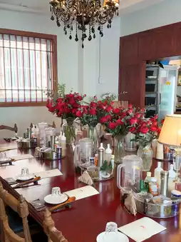 这里拥有复古而奢华的空间和氛围,鲜花和水晶吊灯交相辉映✨