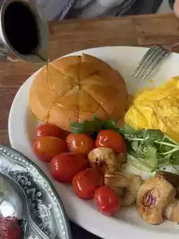 包含煎饼、香肠、炒蛋、番茄和蘑菇。绝对美味!