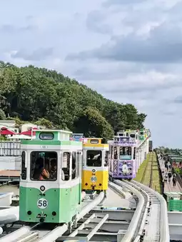 各位,我终于体验了釜山海云台海滩列车的重头戏——空中胶囊列车!之前只在社交媒体上看过它的照片,亲眼见到时更是惊艳不已。🤩