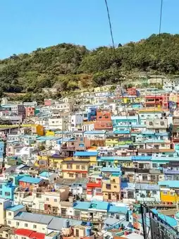 甘川文化村是什么?它位于釜山沙下区,是一个依山而建的街区,以其陡峭蜿蜒的街道和色彩明快的粉彩色房屋而闻名。这里最初是20世纪20年代至50年代工人阶级移民和难民的贫民区,2009年通过一项公共艺术计划焕发新生,并赢得了“韩国圣托里尼”、“釜山马丘比丘”和“乐高村”等美誉。
