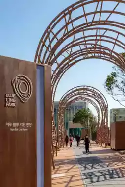 蓝线公园沿着一条古老的铁路线而建,这条铁路线沿着海岸线延伸,从尾浦一直到松亭,中间有几个小站。你可以沿着绿色铁路步道走完全程,也可以搭乘海滩小火车或空中胶囊。我两种方式都体验了一遍。