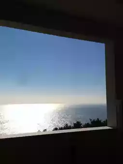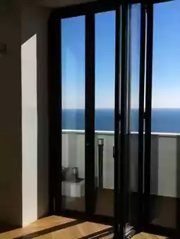 一家拥有落地窗,可欣赏壮丽海景的咖啡馆。