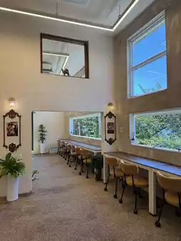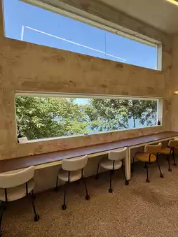 从踏入店门的那一刻起,无论身处何处都能欣赏到壮丽的海景,饱览天海交融的美景。店内甚至还挂着一张史努比的海报。