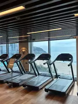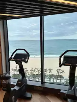 虽然器械可能不是顶级品牌,但您可以在跑步机上一边欣赏海云台海景一边进行简单的锻炼。设施维护得非常好,非常干净👏