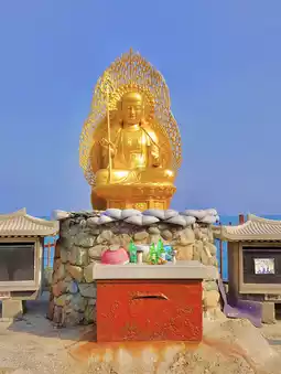 附近还有一些可以享用小吃和购买纪念品的摊位,是休憩放松的好去处。海东龙宫寺不仅是一处值得游览的寺庙,更是一处绝佳的户外约会地点,你可以在这里享受浪漫的漫步,在秋日的海边留下美好的回忆。