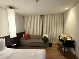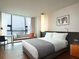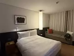 十月底,我预订了两晚海景高级双人房,位于15楼。平均每晚价格不到5000新台币,入住体验非常轻松舒适,而且十分便捷。前往海云台海滩的机场巴士站就在街对面。当你走进房间,看到令人惊叹的海景,并且知道海滩就在不远处时,你会觉得物超所值。房间空间宽敞,轻松容纳两个29英寸的行李箱和两个随身行李,还有不少剩余空间。房间的暖色调简洁明快,灯光充足明亮,浴缸也很大很深——我非常满意。洗漱用品是高端品牌,房间里还有一张舒适的沙发,可以让你放松身心,欣赏海景。酒店位置非常便利,一边是海滩,另一边是海云台捷运站。附近还有许多餐厅、夜市和咖啡馆。最重要的是,海云台胶囊酒店和沿海铁路都在步行范围内!我强烈推荐新罗舒适酒店海云台店给计划釜山自助游并想欣赏海景和享受舒适住宿的游客。前台工作人员非常热情,英语沟通能力也还可以。