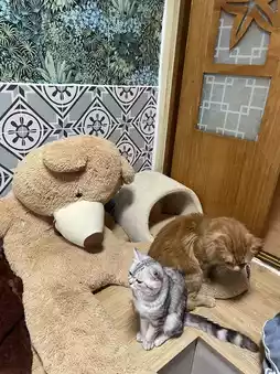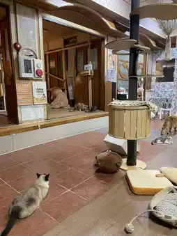 这里有很多长毛猫,是拍照的绝佳地点。每张桌子上都配备了洗手液和玩具,让您可以安心地与猫咪们玩耍。