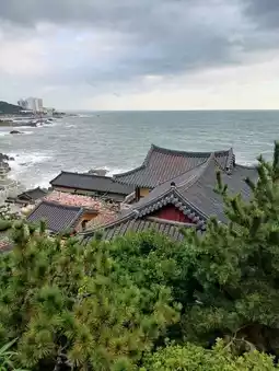 龙宫寺是釜山机张市的代表性寺庙,以其仿佛漂浮于海面之上的独特建筑而闻名。沿着悬崖小径漫步,您将被神秘的氛围和海风的气息所深深吸引。鲜艳的红色寺庙建筑与蔚蓝的大海交相辉映,形成鲜明的视觉对比。尤其是在月光皎洁的夜晚,月光洒在海面上,笼罩着整座寺庙,营造出如梦似幻的景象。微风拂过佛像和石塔,令人心旷神怡。这里是自然与佛教文化完美融合之地,是您釜山之旅的必游之地。