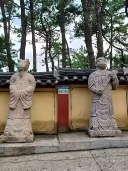 龙宫寺背倚无垠的蔚蓝大海,宛如神话传说中的仙境。拾级而上,微风拂面,海浪轻柔拍岸,令人心旷神怡。金碧辉煌的佛像和许愿石塔,营造出庄严而温馨的氛围。沿着海岸小径漫步,一眼便可饱览大海与寺庙的壮丽景色。尤其在日出时分,夕阳的余晖洒在佛像上,更添一份神秘之美。这片宁静祥和之地,海风的气息与佛经的诵经声交织,令人心旷神怡,仿佛置身于一片净土。