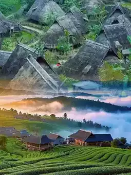 - 清晨云雾缭绕☁️,景色最为迷人;村口观景台可饱览全景。-
