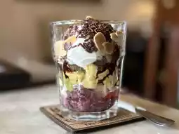 宽敞的空间被划分为多个区域,每个区域都拥有独特的室内设计。您可以在等待美食或饮品的同时,欣赏画作和各种艺术品。这家咖啡馆供应印尼特色菜肴和饮品。我最喜欢的是Gelato podeng,这是一种将意式冰淇淋与印尼特色冰糕podeng完美融合的美味甜点。