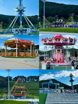 🎠 搭乘巴士返回千人广场站,步行前往游乐区,体验巨型钟摆、海盗船、套鹅圈等项目……最后前往梦幻城堡体验滑梯(节假日预计排队30-40分钟),完美收官~