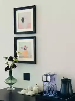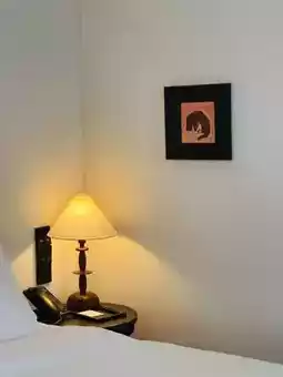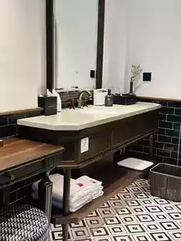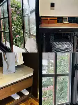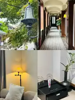门一打开,复古的灯具散发出温暖的光芒,欧舒丹的淡雅香气扑面而来。湖风轻拂,吹动着薄纱窗帘。干湿分离的浴室配备了乐帆吹风机,窗边摆放着一张丝绒沙发,窗外熙熙攘攘的江街景色宛如一幅灯笼点缀的船只画卷。管家轻声提醒我:“迷你吧里的饮品请随意享用。如果您想尝尝和街艺德艺的炖米粉作为晚餐,可以点外卖,我们会送到您的房间。”