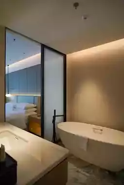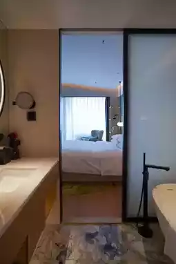 整个酒店都非常棒。到了酒店,主入口就给人一种很特别的感觉。这是一家超高端的万怡酒店,阶梯式建筑,共有205间客房。房间面积、硬件配置和细节都无可挑剔。公共区域点缀着小桥和景观花园,酒店甚至还设有室内外游泳池。我这次入住的客房硬件配置非常高,包括热水壶、咖啡机、天然矿泉水、戴森风扇等等,还有电动窗帘和深浸浴缸,对于万怡酒店这个品牌来说,这样的配置真的非常令人印象深刻。