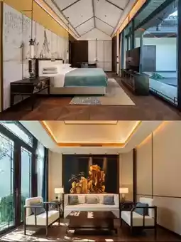 踏入顺山淮锦华坚府,仿佛穿越时空,进入了一个充满文人雅致的世界。酒店的设计灵感源自古代礼钟和鸡子形器皿,匠心独运,营造出浓郁的文化氛围。墙上的春秋题跋、竹简纹样、石雕屏风和竹制器物,无不散发着古典之美。在这里,您可以静静地品茶,阅读一本好书,享受片刻的宁静。🍵📖
