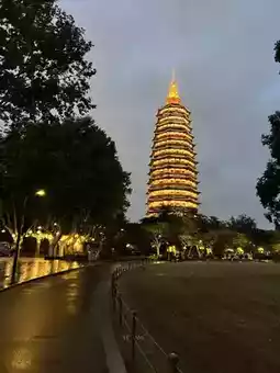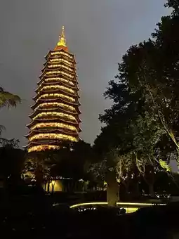 在常州游玩期间,我游览了天宁寺和红梅公园,说实话,晚上去真是个明智的选择。夜晚的氛围宁静祥和,灯光璀璨夺目,而且比白天人少得多。公园24小时开放,但天宁寺下午5:30后就关闭了。