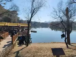 苹果香亭,金顶亭阁静静伫立于光秃秃的树木之间,倒映在清澈如镜的湖面上,波光粼粼。不远处,古朴的游船静静停泊,阳光洒在岸边的芦苇上,波光粼粼。远山与静谧的湖面交相辉映,构成了一幅和谐的冬日画卷——一处静谧的世外桃源,以其永恒的宁静抚慰着心灵。#中国旅行 #旅行 #情侣游 #旅游攻略 #我的行程 #中国