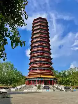 这座十三层宝塔可以俯瞰城市美景,整个寺庙群被自然风光和历史遗迹环绕。金山寺是一处静谧的世外桃源,