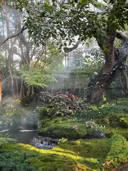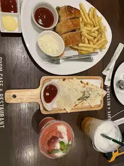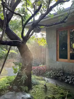 When I found out I was going to Chiang Mai, I researched a lot about restaurants and cafes. Chom Cafe is one of the most popular spots where many people love to take photos. Initially, I saw reviews from others, and the photos looked stunning. I wondered if the real place would look the same, and it turned out that it did. The cafe is divided into indoor and outdoor garden areas. The garden has mist that makes it look dreamy, like a fairy tale. If you're good at taking photos, they will turn out beautifully, but even just looking at it with your eyes is breathtaking. The sunlight adds to the beauty, making the photos even more stunning.