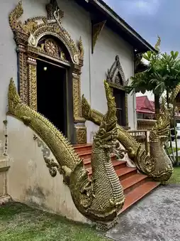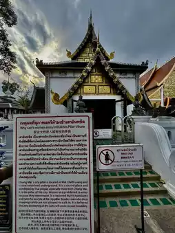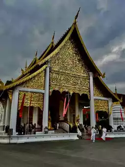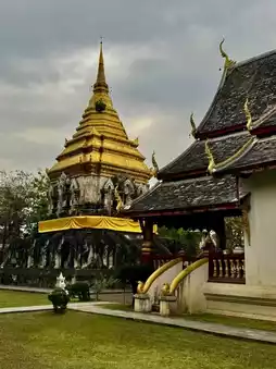 洛克莫利寺是清迈唯一一座由王后建造的寺庙。主殿采用黑白配色,与其他金碧辉煌的寺庙截然不同,使其更加独具特色。