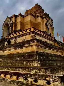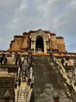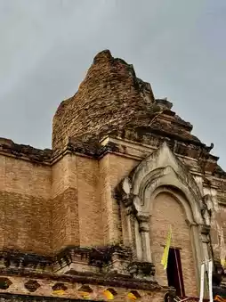 契迪龙寺位于清迈古城中心。尽管曾遭受地震和战争的破坏,这座寺庙依然屹立,高达60米,是清迈最高的寺庙。