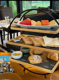 #加拿大航班体验🍽️ 清迈河畔早餐点评!一边欣赏静谧的河景,一边悠闲地享用早餐,氛围超棒😌✨ 食物种类丰富,食材新鲜,非常满足!🥐🍳 特别是水果和果汁,真的非常新鲜,热菜也摆盘精致,是一顿令人愉悦的早餐💕 河畔早餐,治愈身心!🌿☀️
