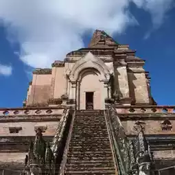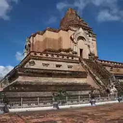 来到清迈,一定要去契迪龙寺看看。这座古老的寺庙拥有雄伟壮丽的古老佛塔,巍然屹立于清迈市中心。🏛 这座佛塔曾供奉着玉佛。尽管它曾因地震而部分损毁,但依然保留着昔日的辉煌与神圣。