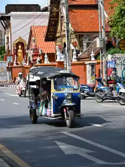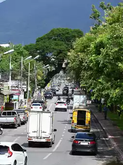 僧侣的剪影在骑行的人群间穿梭。佛寺(Wat Buppharam)的香烟袅袅升起,当地人在城门的神龛前敬献莲花。☀️