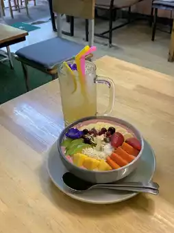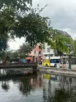 沿途有公园,鲜花盛开,风景美不胜收!我去了星巴克,喝了一杯在韩国喝不到的饮品,还在老城区的坤凯果汁吧吃了朝日啤酒盖饭。