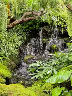 瀑布潺潺,云雾缭绕,营造出美妙绝伦的氛围。