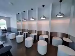 店内洁白的装潢与木质元素和大玻璃窗形成鲜明对比,充足的自然光线从各个角度洒入,让您无需费心寻找完美角度就能拍出美美的照片。空间开阔、通风、舒适。