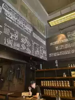 咖啡馆的氛围很酷,带有一种原始的工业阁楼风格,从店面到咖啡杯和木桌,都独具特色。新鲜烘焙的咖啡香气弥漫在空气中。这里既温馨又时尚,无论是想放松身心的人还是对咖啡颇有研究的人,都能在这里找到乐趣。