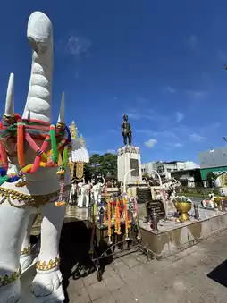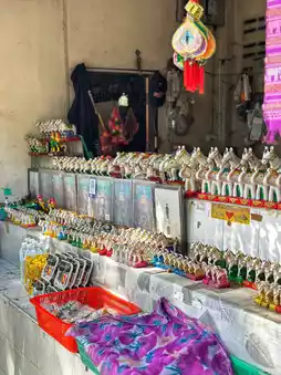 每天清晨和傍晚,人们都会前来瞻仰,点燃香烛,并供奉木制大象和马匹以祈求好运。